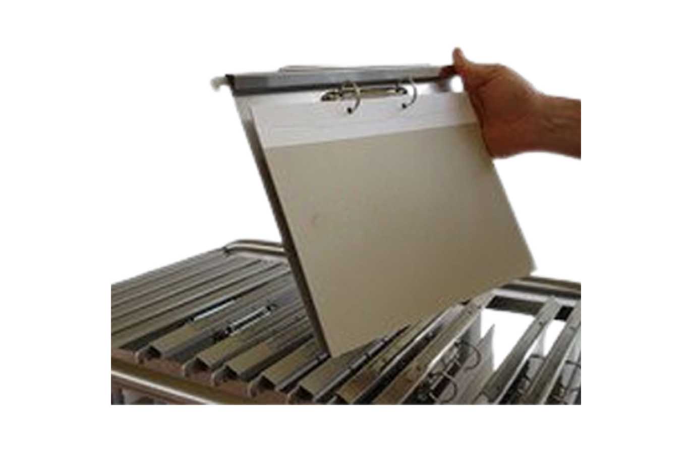 The systems developed fall under two basic categories; ward station based and bed based. Bed based chart holders are used for non-confidential information such as temperature charts, blood pressure, fluid balance and history of drugs administered.